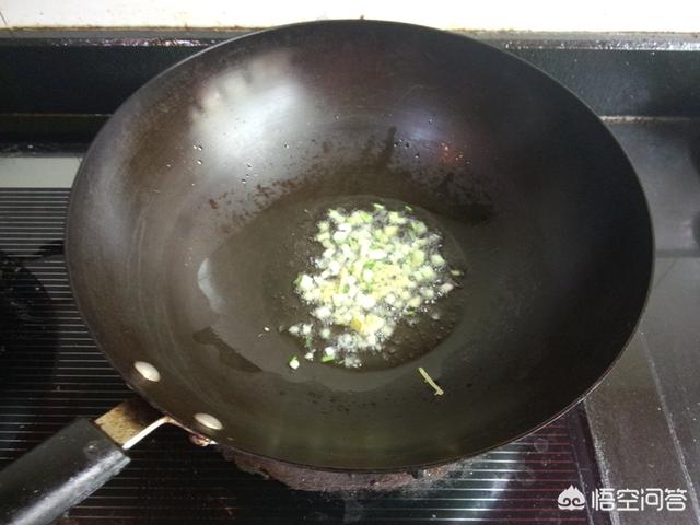 5.锅里油热,放入姜,葱爆香,