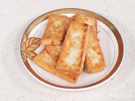 关火后盛出煎熟的豆腐,装入盘中,待用。