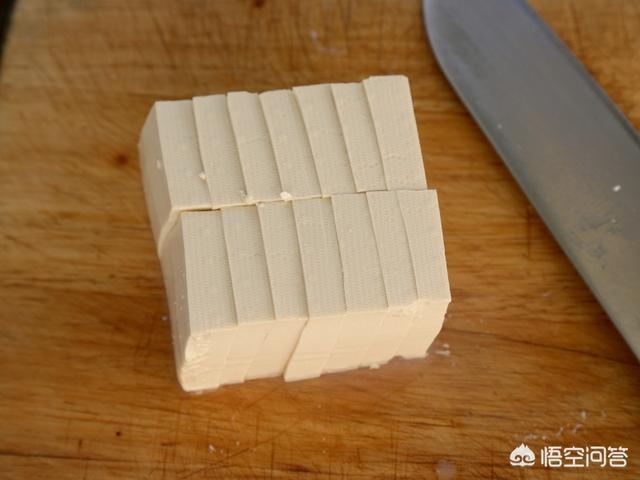 5.豆腐切方片。