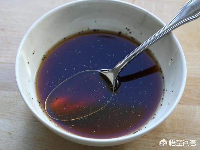 7.我们还要调一个碗汁:老抽3克、生抽10克、蚝油5克、糖2克、醋2克、高汤半碗、胡椒粉少许和适量盐