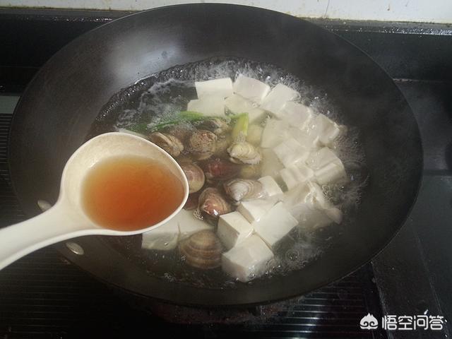 9.加料酒煮开,10.煮至蛤蜊壳开,