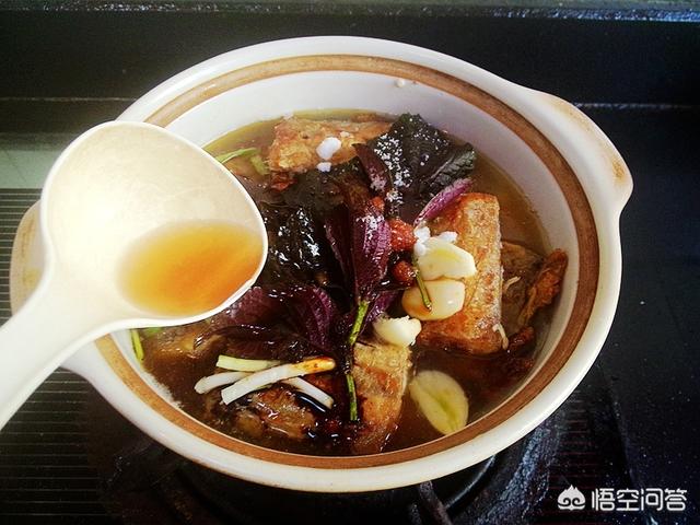 10.放入姜,蒜,葱白,辣椒,紫苏叶子,