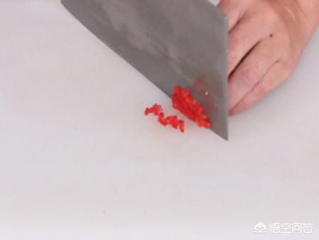 将洗净的红椒切开,去籽,再切细丝,改切成丁。