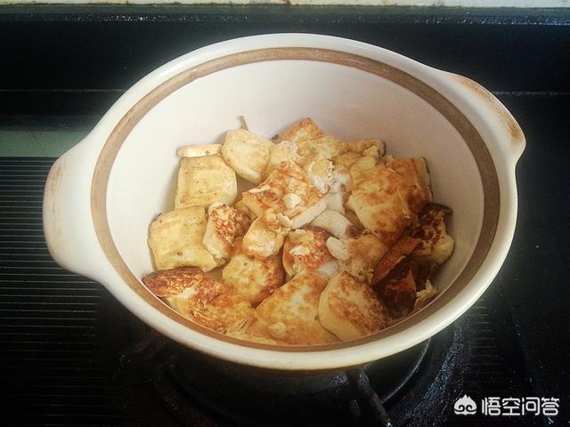 8.取小砂锅,放入豆腐,