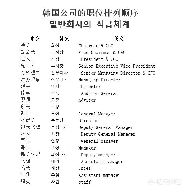 韩国公司岗位级别有哪些?