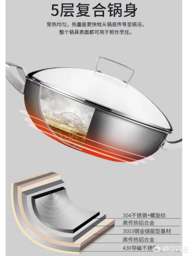 ☞不锈钢锅一般是5层复合结构,里面接触食材的部分是304不锈钢,中间夹层是铝层,外面是430不锈钢。无论是外层的430不锈钢在火焰上灼烧,还是内层的304不锈钢,包括中间的铝层部分受热后都不会有有害物质出现。