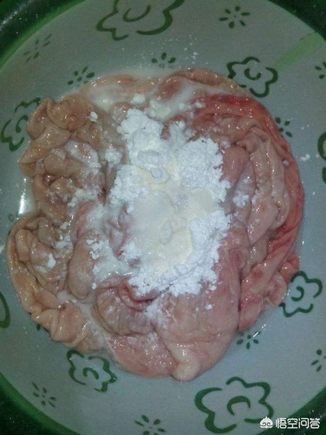 2.放点生粉抓洗,生粉可以有效去除肠子上的稠物。