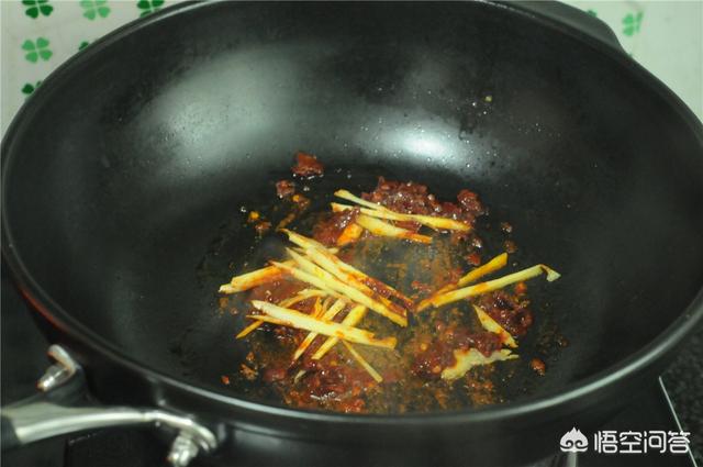 3. 再起油锅烧至4成热后改温火,加入豆瓣酱炒出红油,如上图
