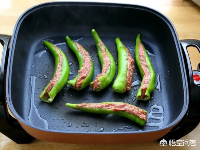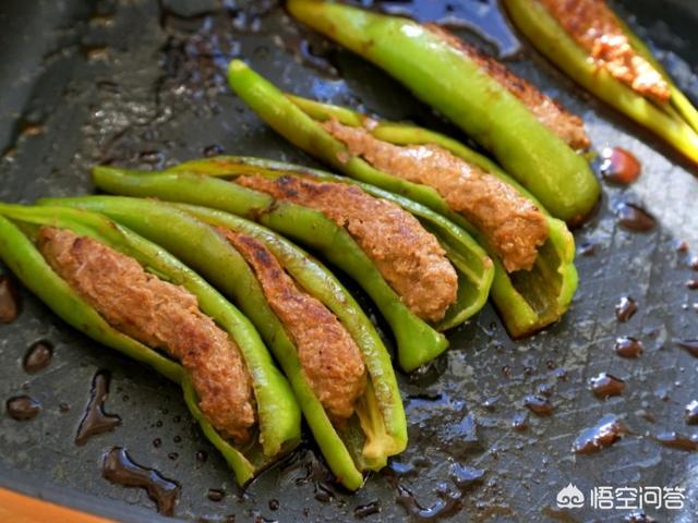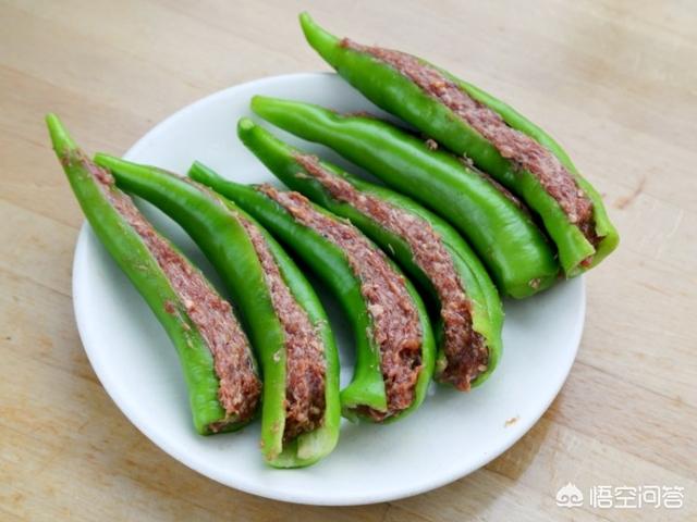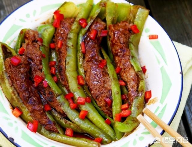 谢谢邀请: 牛肉酿尖椒: 这道菜在我上期家常菜视频里做过,我用的是猪肉,剁成肉泥,把尖椒破膛掏空,肉泥馅放盐 鸡精 生粉搅匀后放一个鸡蛋清,塞进尖椒时个尖椒里拍点干生粉,这样肉泥就会粘住,最重要把锅烧热,一定要烧热,不然会粘锅,文火慢煎酿辣椒两面,煎熟后撒点料酒,放蒜片焖个2分钟,淋上香油起锅就成。专业烹饪方法,杜绝网搜答案。
