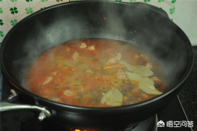 7.再把香料香叶、八角、桂皮和干红辣椒一起加入锅内,如上图