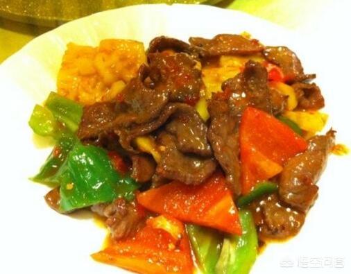 牛肉菠萝、牛肉尖椒可以说是酒店的两大硬菜,香辣牛肉适合家庭制作。
