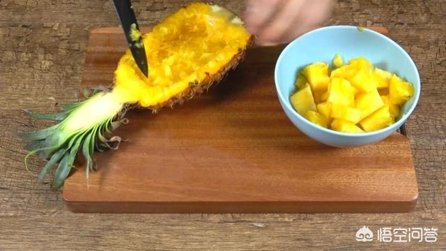 3.菠萝切成两半,挖出果肉,菠萝壳待用,如上图