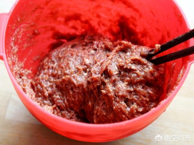 1.牛肉泥中加入盐、糖、老抽、生抽、胡椒粉、生姜和小葱拌匀。