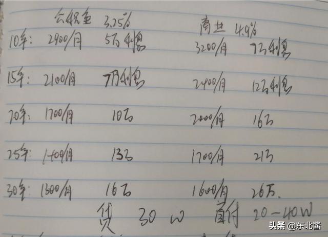 买房分期当然是时间越长越好,建议30年,下面图片是自己整理的贷款30万对应的利息,目前公积金贷款利率是3.25%,商业贷款4.9%。