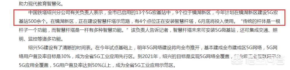 我们看一个缩影,在绍兴市《我市发布5G网络规划建设方案》中提到:全市已启用的13个5G宏基站中,9个位于镜湖新区,今年计划在镜湖新区建设5G宏基站500余个。这也就说明了,在5G路上,都在积极部署。