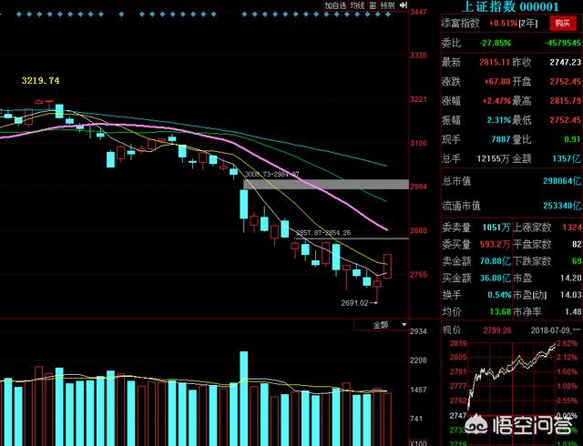 上周沪指连续下挫,跌至2700点下方,录得3587点见顶下跌以来的新低2691点,七翻身行情似乎成为泡影,反而变成“七翻车”行情了,今天沪指的大涨红周一可谓是来得恰到好处,刚好为七翻身行情正名。