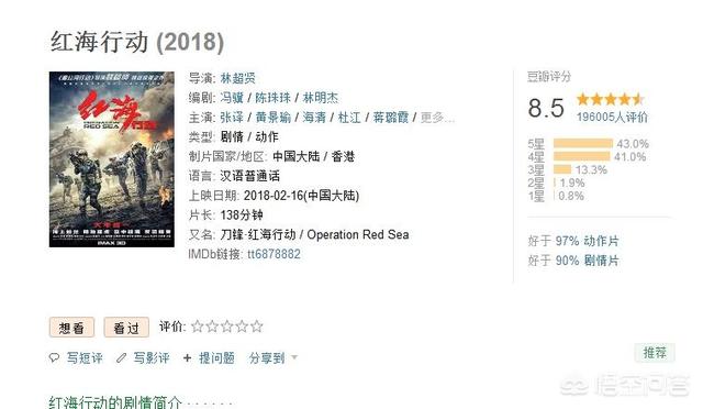 《红海行动》豆瓣8.5分其实有点高了,我这是单指在类型片中,豆瓣均分。