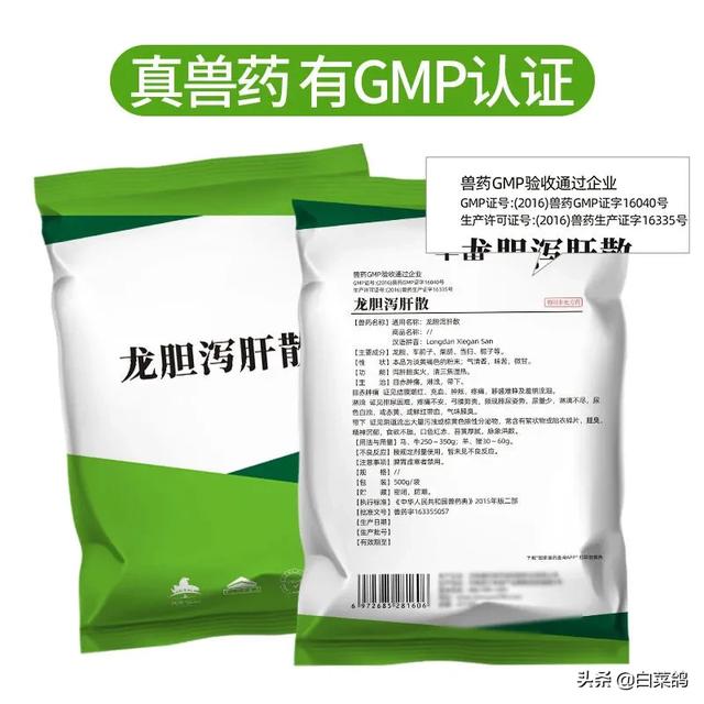 例如一袋龙胆泻肝散是500g,牛马的话拌料200斤,猪羊的话拌料500斤
