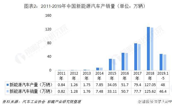 2018年,中国汽车产销量出现十年以来的首次下滑;2019年1-5月中国汽车产销下降趋势未得到有效遏制,产销量下降幅度均超过12%,且降幅较1-4月有所扩大。在中国汽车工业整体萎靡的情况下,新能源汽车产销量却逆势上涨,随着我国各省市实施国六排放标准,在环保压力下,未来新能源汽车产销量仍将保持快速上升态势。