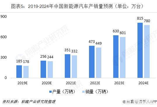 就新能源汽车行业1-5月发展态势来看,产销量分别同比增长46.0%和41.5%,如果下半年能保持此增速,则我国新能源汽车产量将突破185万辆,销量达到178万辆。未来在国家推动之下,我国新能源汽车有望维持30%的增长速度,到2024年我国新能源汽车产量有望突破800万台,销量达到780万台。