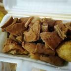 走进民信对面的巷子,步行5-6分钟即到细妹牛杂。我们去的时候接近打样时间,人还很多。铺子不大,不知道是不是细妹本人的一个大姐在霸气的剪牛杂,眼神特别犀利!牛杂分50和80两种,牛杂煮的特别入味,软软的很有弹性,连我这个平时不怎么吃下水的人都觉得吃的意犹未尽。尤其推荐里面的白萝卜,比牛杂更入味更好吃。
