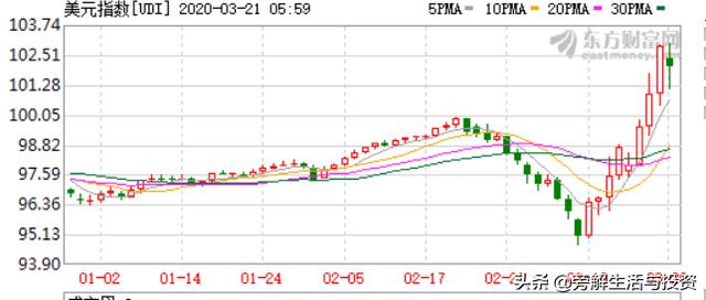 在这种情况下,为了稳定资本市场,美联储迅速展开了一系列行动。这些行动包括,下调联邦基准利率到0的水平,直接购买场内票据,实施量化宽松政策等措施。这些措施,在短期内给市场提供了流动性。我们可以看到,反映美元供需状况的美元指数,在3月9日开始的持续上涨后,终于在上周五,开始拐头向下。美元指数向下,表明短期美元流动性得到了保障,而且对稳定美国股市和国际资本市场起着至关重要的作用。