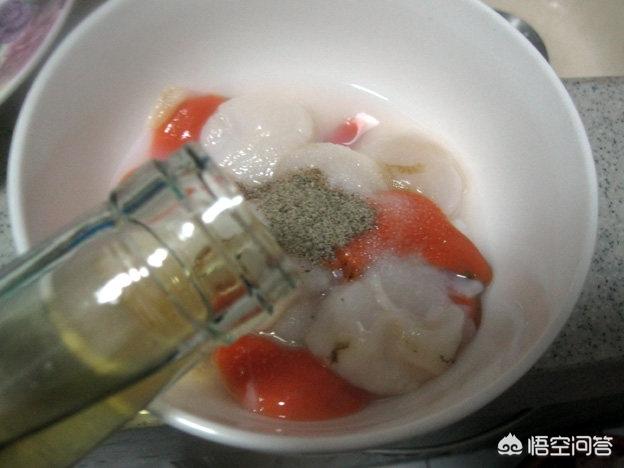 3.扇贝肉加料酒腌制10分钟,如上图