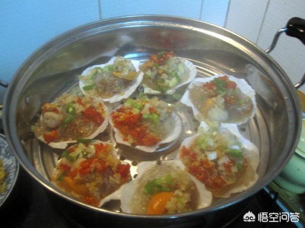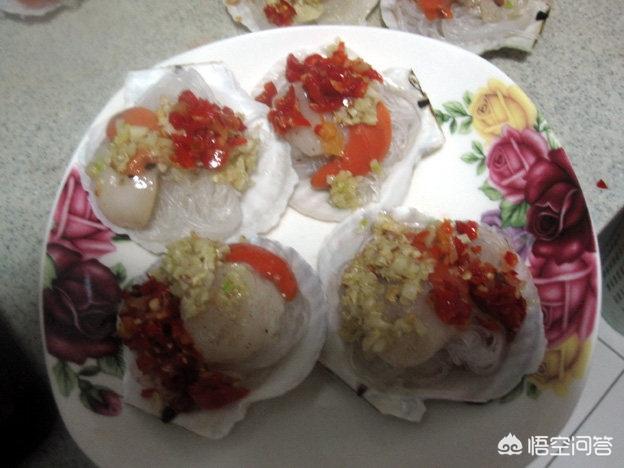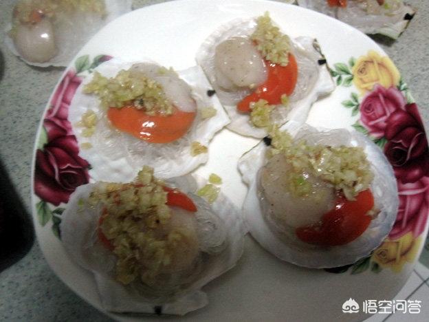 【主料】扇贝500克、粉丝50克(可以不用粉丝)。【辅料】橄榄油10克、盐3克、蒜20克、剁椒20克、姜10克【做法】