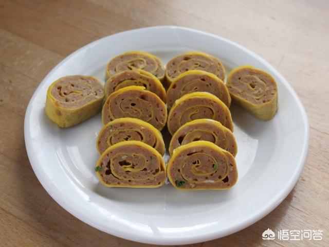 4.将蛋卷切成厚片。蛋卷菜谱请点击http://www.haodou.com/recipe/874361