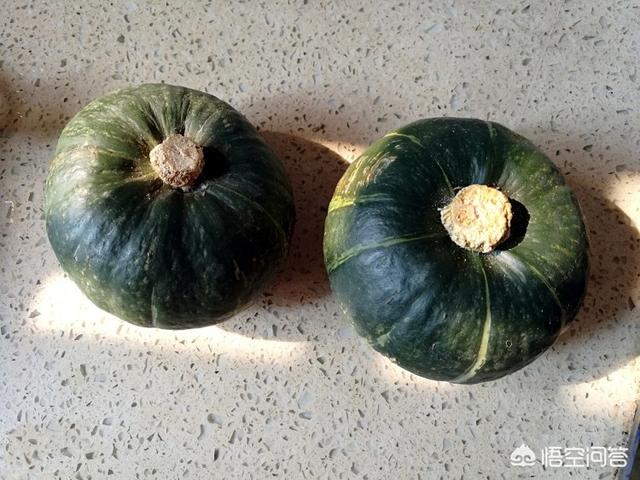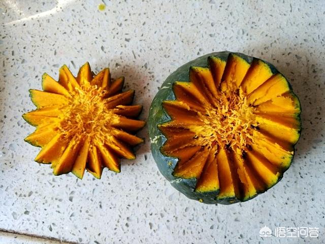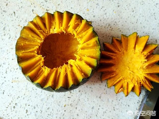 8.靠近根部,将南瓜一分为二