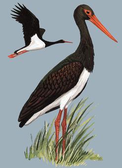黑鹳,喜欢在清洁而人类干扰较少的溪流觅食鱼类 图源:中国鸟类野外手册
