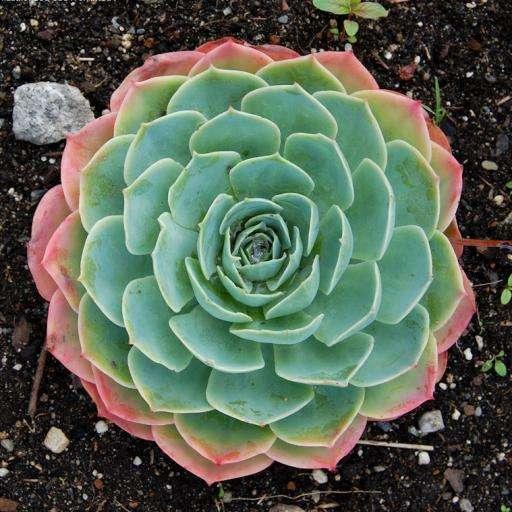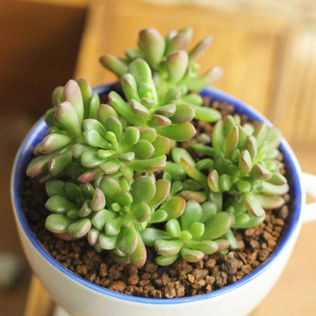 特征:多年生肉质草本,全株光滑无毛,富含水份。根数条,肉质,淡红色。叶轮生,层层堆叠,卵形至卵壮披针形,全缘,粉绿色。春季抽花茎,开蓝紫色小花,复聚伞花序排列为圆锥状。