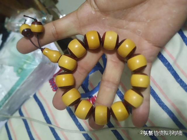 葫芦手串一般都是檀木,牙料,牛骨料,桃核等等各种材料镶嵌的,里面用檀木棒料镶嵌,铜管贯穿。个人感觉不用刷任何油,前期不要直接上手盘,带手套盘,盘出类似于玻璃底似的,就好像表面度了一层玻璃似的,再上手盘,后期跑出来红润有光泽的感觉,很漂亮,如果直接上手盘或者摸各种油的话后期盘出来颜色绝对会发污的感觉,有种暗红色的感觉,很不好看,另外选葫芦手串首先要看他做工,最主要的要严丝合缝,衔接处用手摸摸不出来是衔接在一块的,然后就是要填充的,铜管贯穿的,这样有手感,还有就是整体形状以及颜色,刚才忘记说重要的一点衔接处不要伤葫芦皮的,有的做的直接用牙机或者砂纸打磨出来的,这样葫芦皮已经彻底伤了,没有太多的盘完价值了。