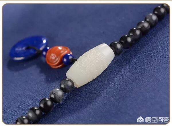 对于青花手串三通配珠可以有同色系的白玉翡翠和撞色系的南红,青金石,绿松石,蜜蜡