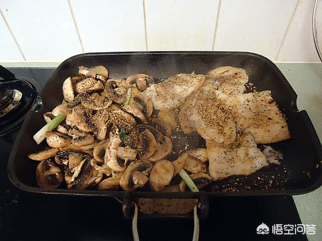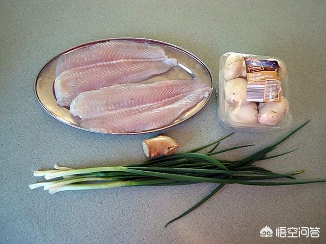 【主料】龙利鱼片300克、蘑菇150克【辅料】橄榄油10克、盐3克、姜3克、葱3克、香料5克