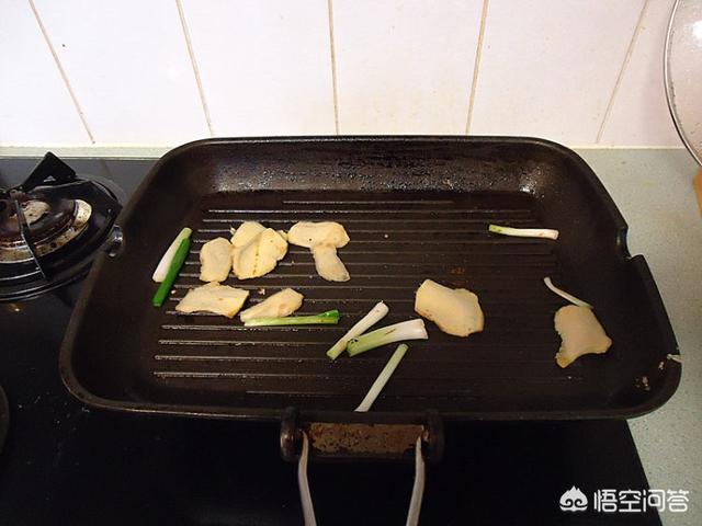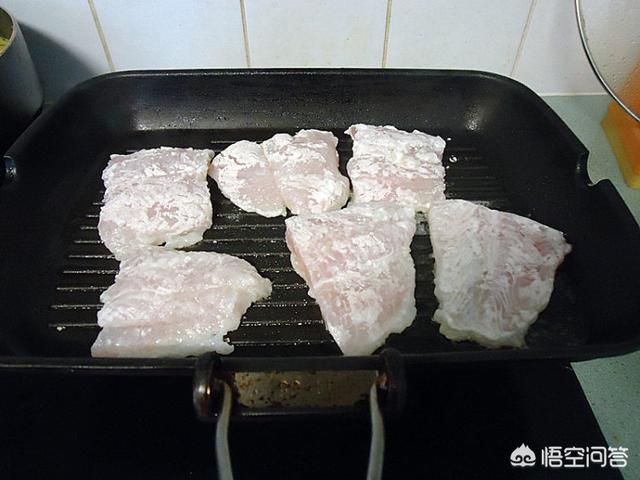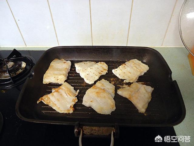 4.起烤盘加橄榄油放龙利鱼煎,如上图