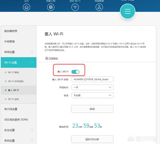 由于我们很难不让客人来家里的时候接入wifi,为了安全,也可以开启访客模式,这样客人使用的wifi是和路由器本身隔离的,这样更加安全。