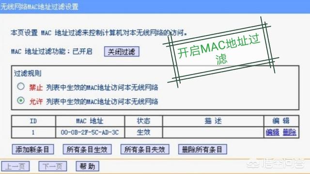 二、开启MAC地址过滤。每个无线网卡都具有唯一的MAC地址,我们只要在路由器后台开启MAC地址过滤,只允许绑定MAC地址的设备上网,就可以有效防止蹭网。具体设置如下:进入路由器后台>无线设置>开启MAC地址过滤>允许列表中生效的MAC地址访问本无线网络,之后将自用上网设备的MAC地址填入列表中,MAC地址可在手机设置中的“关于手机”查看。