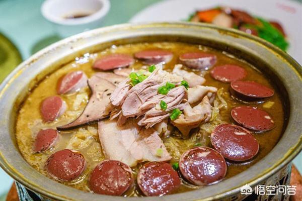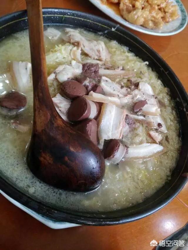 而四川酸菜和东北酸菜,你觉得哪种才是更加符合自己口味的酸菜?今天先大家讲我最喜欢的东北酸菜的【杀猪菜】名字就特别霸气,关于杀猪菜的起源,有很多种说法,杀猪菜看似豪放,但历史深厚。杀猪菜原本是东北农村每年接近年关杀年猪时所吃的一种炖菜。过去,人们没有条件讲究什么配料、调料,只是把刚杀好的猪的血脖子斩成大块煮熟后切成大片放进锅里,然后边煮边往里面放酸菜。加水和调料,等到肉烂菜熟 后,再把灌好的血肠倒进锅内煮熟。杀猪菜是黑龙江特有的“过年菜”。每年腊八之后,养了一整年的大肥猪就可以拿来“开刀”了!“小孩小孩你别哭,过了腊八就杀猪”民谚可以说陪伴了每个东北农村小孩的童年。那个年代日子都过得艰苦,也只有春节才能痛痛快快吃上一顿杀猪菜。东北年关杀猪的时候,一般都会来好多人帮忙,亲戚都来吃猪肉,邻里过来帮忙杀猪,所以非常热闹,每家杀猪的时候几乎都能摆个2-3桌,大家来帮忙也是来吃猪肉,所以杀猪菜就是这么得来的。一起来看看吧,农村一般人家有2口大铁锅,另一个锅里炖的是酸菜,地道的那种自家腌制酸菜,而且一定要用煮肉的汤来炖这个酸菜。那样炖出来的酸菜才算地道,菜里融入了肉汤的鲜香。后续会把另一个锅里煮熟的肉也放倒酸菜的锅里,继续炖,猪每一部分的肉都放进去一些,还有血肠切好了也放进去。这种大肉,吃到嘴里肥而不腻,唇齿留香!沾点蒜酱,那味道,你就流口水吧!如果想吃到正宗东北的杀猪菜,一定要去东北。 下面介绍【杀猪菜】的做法:材料;熟猪五花肉、熟猪肠肚、血肠、酸菜、干粉条、冻豆腐、姜片、葱节、香菜节、精盐、胡椒粉、料酒、酱油、鸡精、味精、混合油各适量猪骨头汤、蒜泥味碟2个.