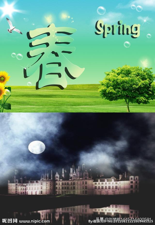 《春》天到来农耕忙,《夜》昼难分岂能忘,《喜》乐无忧勤播种,《雨》水如金筑城墙。