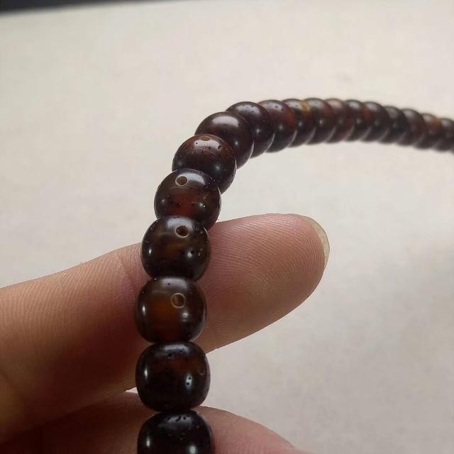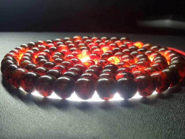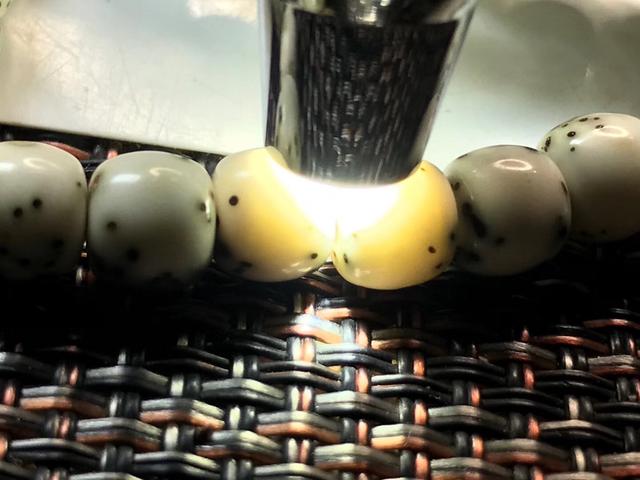 菩提子经过长时间的盘玩,手上的汗液、油渍浸润到菩提籽内部,在光线的照射下显得光润通透,这就是玉化!