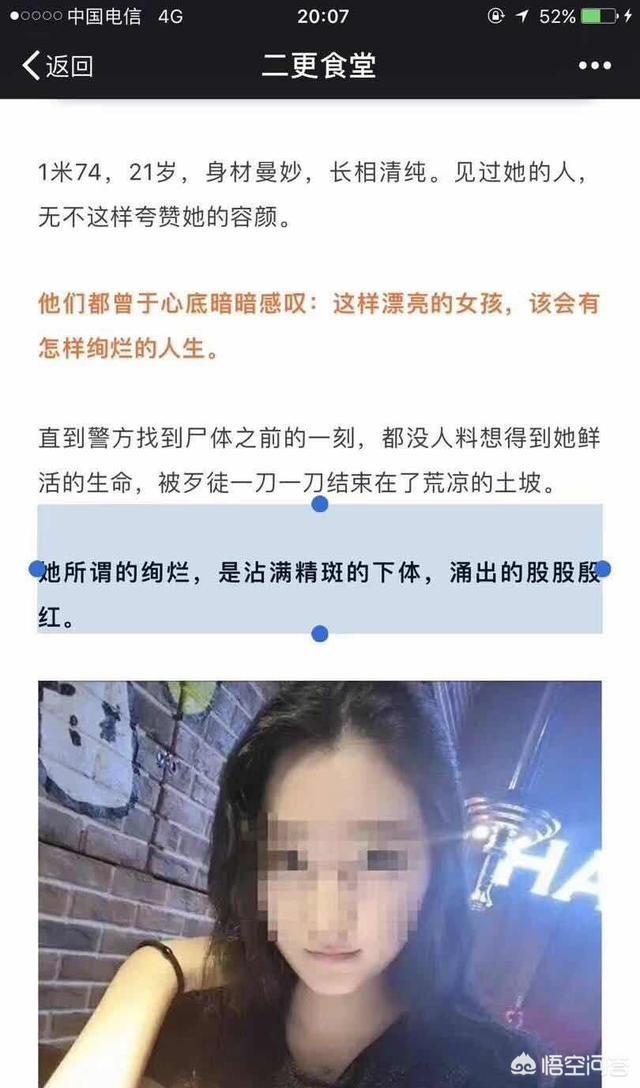 要是说凶手毫无人性,那二更责任人可以说毫无道德底线,没有道德底线的人又和凶手有何差异,简直就是变态。在这样的情况下发出这样的文章不仅是对死者的赎渎和侮辱,更是对社会道德的赎渎和挑战。不管任何人,什么身份,只要对死者不敬,都要得到严惩,热度不是你想蹭就能蹭。要有良知,没有良知的人不算个完整的人!