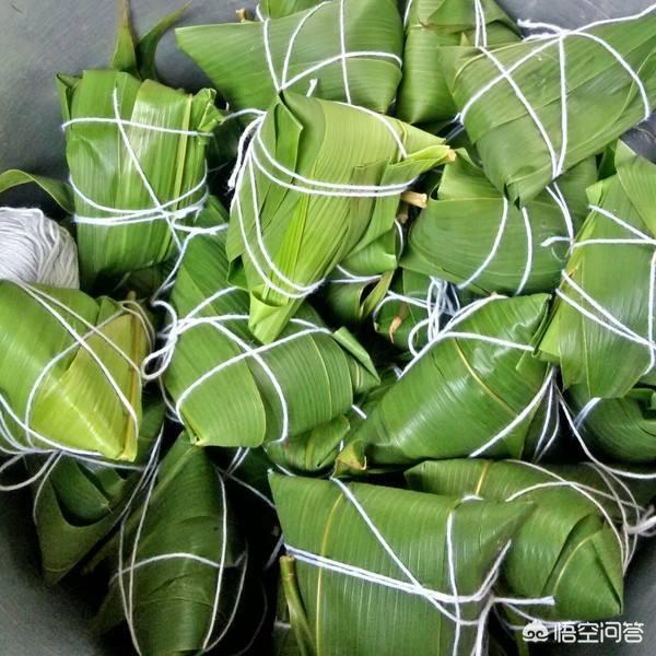 包粽子用的是糯米,有时里面放点大红枣或者花生米,粽子用稻秧捆扎,两个一盖,吃的时候沾点白糖,小时候喜欢吃甜的,年龄大了到不怎么喜欢吃了。