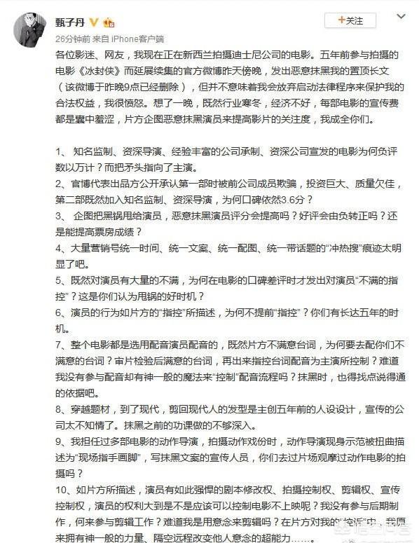 《冰封侠》官方和主演甄子丹公开互撕,对此你怎么看?
