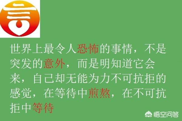 世界上最令人恐怖的事情,不是突发的意外,而是明知道它会来,自己却无能为力不可抗拒的感觉,在等待中煎熬,在不可抗拒中等待,这种挫败感尤其打击自信。