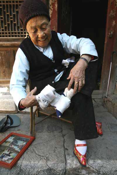 想起了我小时候见到的一件事儿:五十年前(我十几岁)邻居家的大娘(孤寡老人)在家中跌倒把脚崴了,我们几个小孩把她送到家对面的市中医院。当年轻的男大夫打开老人的裹脚布时,我看到老人的脸腾一下红了~而我也是有生以来仅有的一次看到那么“恐怖”的脚……