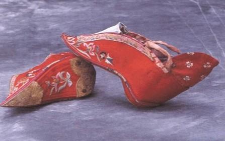 女子裹小脚的起源据说是这样的:南唐李后主(公元937——978)因为喜欢宫嫔睿娘的小脚状态,就让她缠足做新月状,并因此成为皇宫里最受宠的一个女人。于是皇宫里开始流行缠足。由于皇帝的表率作用,小脚成为时尚,继而官场与民间也相继流行。