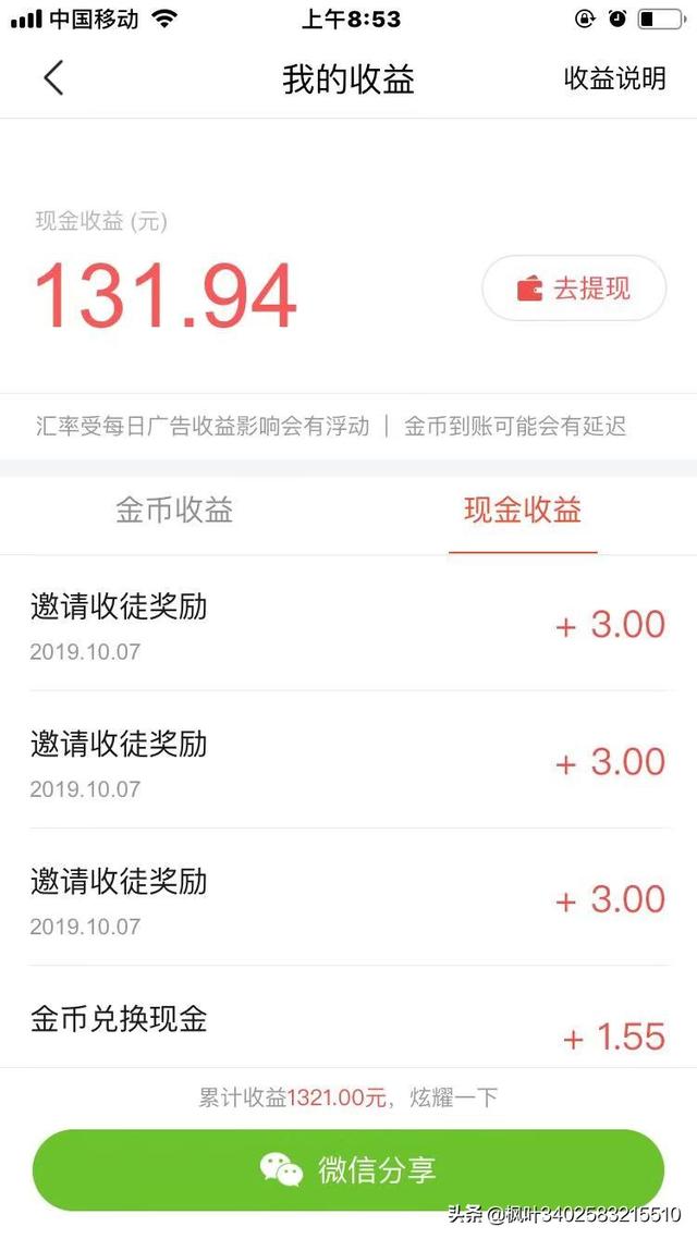 其实网上也很多的赚钱方法,给大家推荐本人亲自测试过的。我下班做了几个副业,坚持六个月,现在每月都有3000+,真实有效而且0成本,如果也想做的朋友可以在手机应用商店下载。 抖音极速版,邀请码88824158, 下载登录进去,点击来赚钱,填写邀请码,即可得4元现金,当天看视频最高可得56元 有火山极速版, 登陆进去,点击红包 填写邀请码299201018, 即可得2元现金,当天看视频最高可得32元 今日头条极速版, 登陆进去,点击任务 填写邀请码1072878601 即可得3元现金,这些软件以后使用都可得现金奖励,平均每天能得100元左右,还不错吧!没有下载的朋友们快点行动吧