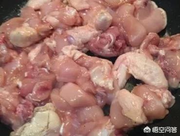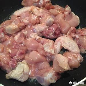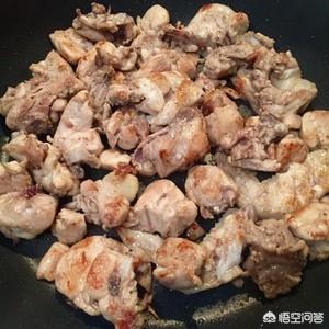 先放适量油,把鸡放入锅内炒到8成熟然后放入盘子里备用
