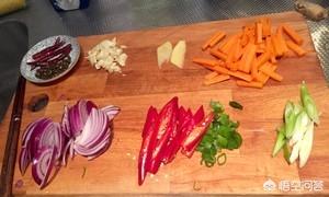 在鸡肉腌制同时准备适量干辣椒(根据个人口味和干辣椒的辣度),花椒(根据个人口味),辣椒(依据个人口味,用彩椒也可以),适量葱(葱白和葱叶分开),姜,蒜,洋葱,胡萝卜(可有可无)